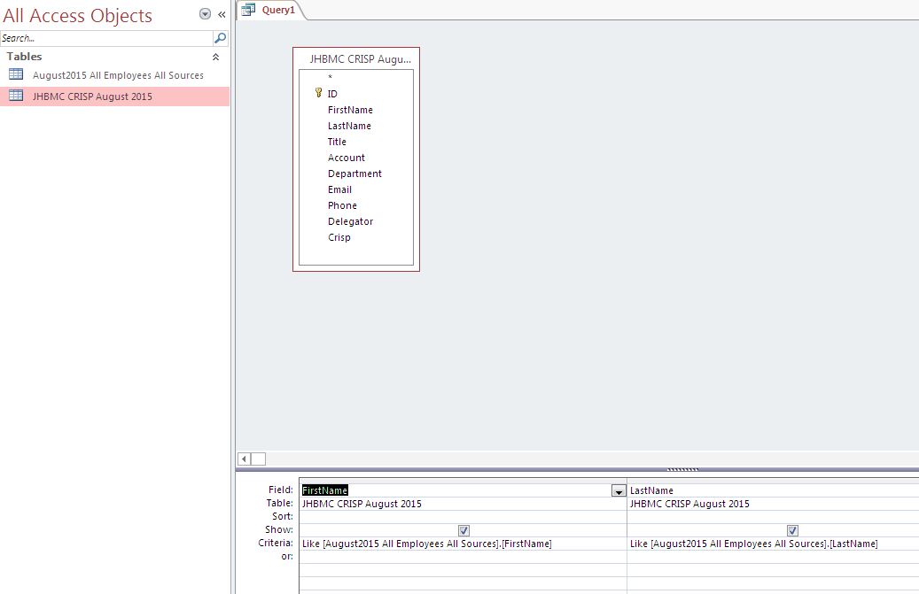 Table A LastName = Smith Table B LastName = Smith (MATCH by joining)