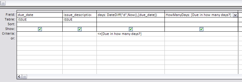 I am having some trouble with this query. Users track issues by due_date. So for example, user wants to find out how many issues are due in 10 days, or in 14 day, etc, depending on the number of days they specify.