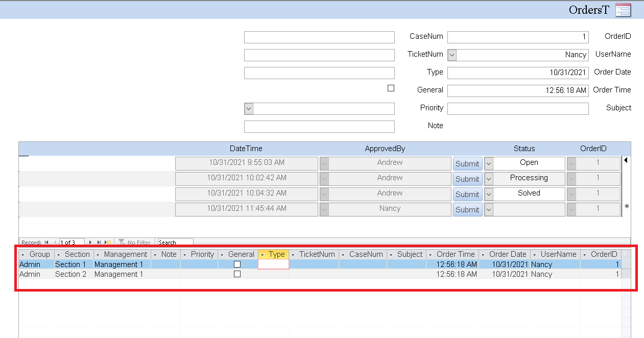 You are very new here and possibly to forums in general but it is really poor form to ask people to download your database and fix it for you. Sometimes we do that but there is way too much wrong with your database that is not at all involved in the problem you have. The database will work if you don't make the changes I suggested. It will be harder to change because the names are too confusing. The picture below tells you what I am talking about. This technique is a crutch and there are at least a dozen ways it will get you in trouble. The combos belong on forms and sometimes reports but NEVER in tables. Having this lookup in the table is helpful to you because you see a name rather than a number but this is just a crutch since you can always see the name if you create a query. But the downside is that you don't see the number which when you are testing might be critical to your analysis. The user is not affected by this at all because users never interact with tables or queries directly.