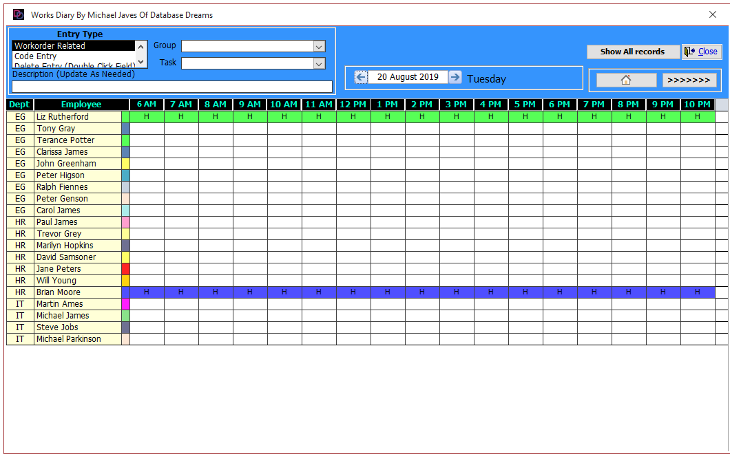 I decided to post this as wanted to see what people thought esp About the time sheet screen as I've seperated each employees entry with their colour but can't make up my mind if I like it or not so what do you think.