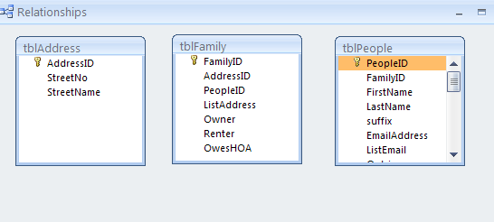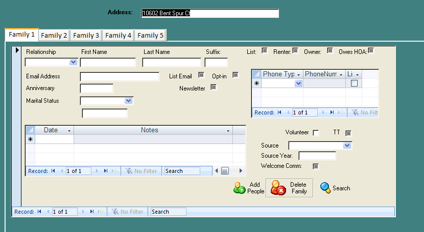 My goal is to write code using SELECT DISTINCT to pull out the FamilyID(s) of each family and then feed it through qryNeighbors for the data and place it in the subform on the tab page.