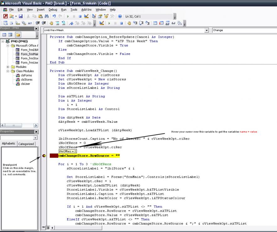 I am very sorry for being difficult, but I have no idea how to see the values of my variables the way you are describing to me. I do see that the strSQL variable is trying to be set before the strVolCat value is set, could this be the problem?