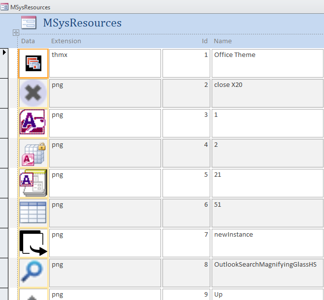 I'm looking at a database with more than 5000 images in MSysResources table.