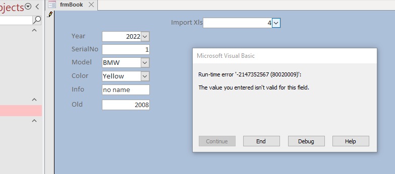 I have a problem how to set the selected value from the xls file to a certain field of the form. The problem is that the values in the table connected to the form are declared as numbers, and the data that is pulled from the xls file is a string. The error would be solved if you just changed the declared values of the table into a short text, but that is not an option for me at the moment, because the existing table is already quite large and it would be bad to damage it.