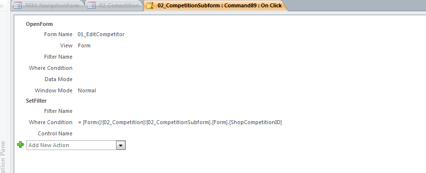 the form openc, yet it does not filter so that the wonted record is shown!!