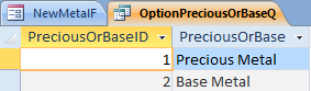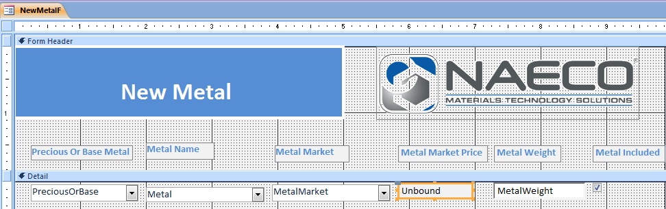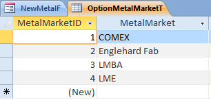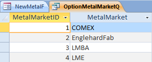 Here is a screenshot of the Metal Market table that the Query is based on: