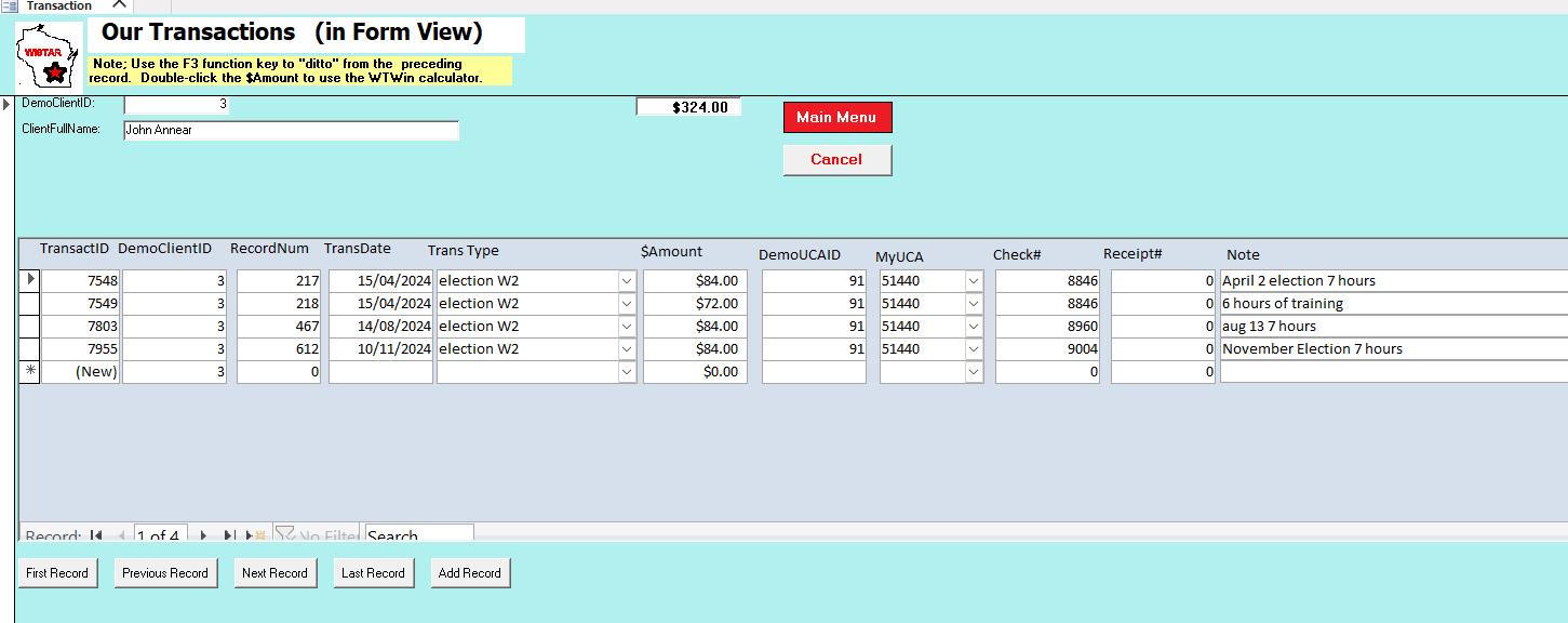 I don't think he is searching for anything, he is trying to add a new record which involves a new check number in the main form and wondered why the subform data was displaying. That's because of Check# linking to Check# in the subform. The big problem I see is that the main form is based off of tblTransactionsDemo table and the subform is based off of the same table. I would think that the main form would be based off of tblDemoClients and the subform based off of tblTransactionsDemo and linked by ClientShortName which is the primary key for the clients. That's another can of worms as well. Should be using an autonumber for ClientID. Really bad idea to use a clients name as the primary key.