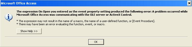 Suddenly one of the forms has decided not to open. The attached JPEG shows the dialogue box that opens.