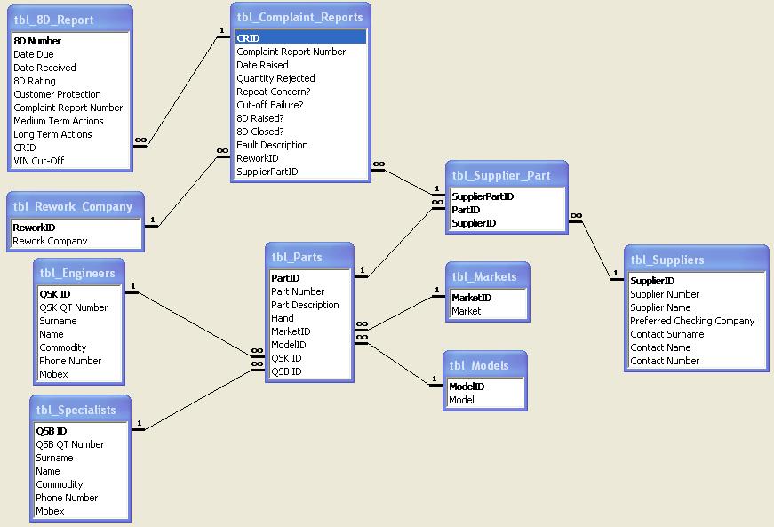 I can't figure out how to get this to work. The record in the complaint form is using "PartSupplierID"; from a transaction table. i.e. the complaint is against a suppliers part, as a part can have multiple suppliers. Attached is a jpg of my stucture.