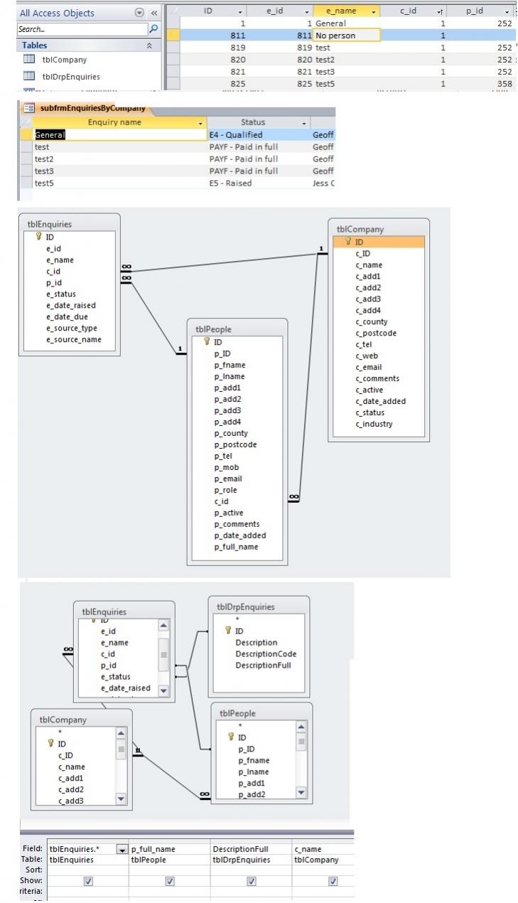 Each company (tblCompany) in the database has at least 1 enquiry (tblEnquiries) linked to it and normally at least 1 (sometimes 0) people (tblPeople).