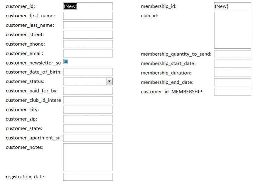 Problem: When I add fields from the Customer and Membership fields and set the Form's "Data Entry" property to "Yes", the form is empty and ready to accept new data (which is what I want). HOWEVER, when I add in the Payment fields, all of the fields in the form then auto-populate with data from existing records in the database. If I create this form in an empty database with no records, all the forms simply disappear. Why is it that the addition of the Payment fields causes the form to exit out of Data Entry mode (even though it says it is still in it), and pull in existing data?