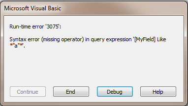 varWhere = varWhere & [COLOR=red]"[MyField] Like *"[/COLOR] & tmp & Me.Text240 & tmp & [COLOR=red]"* And "
