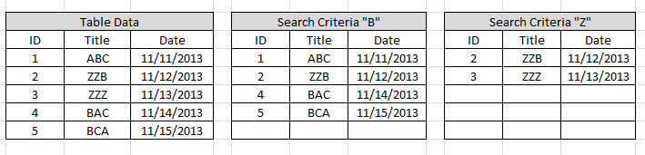 If I want to search for "B", and search every title with an "B" in it (regardless of where the B is), it wont show. If I have a title that is labeled "BAC", it will not show if I search "B", unless I type "BAC".