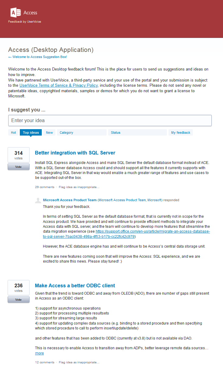 Does anyone remember the Access User Voice request about making Access a better ODBC client?