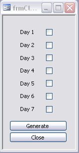 I have created a form that lets you select which days you want a room to be cleaned when it is reserved (for example you want if you want it to be cleaned the 1st, 3rd, 5th and 7th day from the time the customer arrives). What I would like to do is hit the "Generate" button and get a report for the current date showing all the occupied rooms and with a checkbox telling you if that room needs to be cleaned based on what you selected on the form.