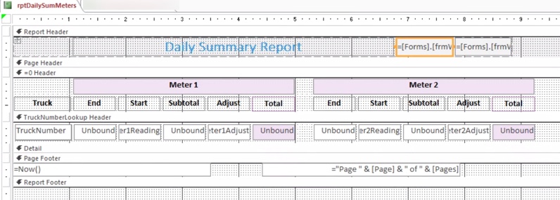 Thats it! I had to make an adjustment to get the TruckNumber to show up properly but this is the final code with both Meters for each truck Thanks so much for your help!