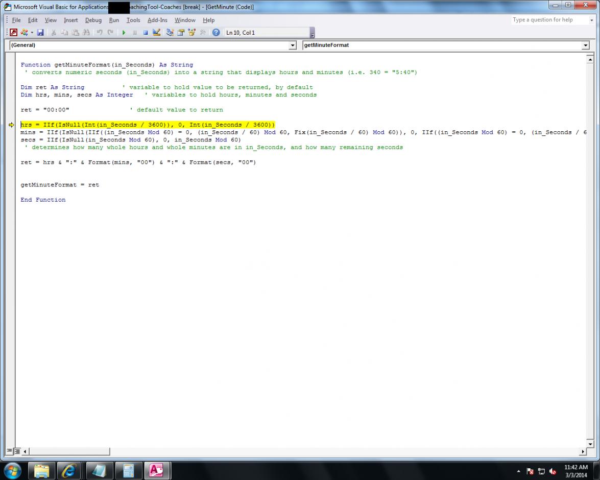 mins = IIf((in_Seconds Mod 60) = 0, (in_Seconds / 60) Mod 60, Fix(in_Seconds / 60) Mod 60)