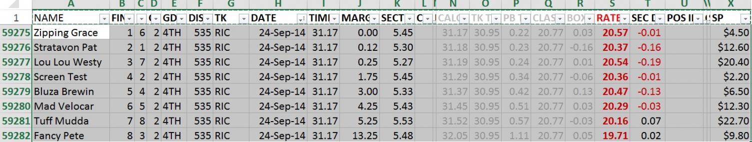 The data is in the form of results for greyhound racing in Australia. I store the results of all races, performing a number of calculations on those results to return some "performance ratings" for these past races. I then use another worksheet to filter data from these past performances and perform more calculations to get "predictive ratings" for upcoming races. Over the years I have developed a number of formulas and macros to do these calculations and automate the process as much as possible (when I started many years ago I kept the information for each dog on 8 X 5 cards all hand written and all the calculations done in my head or on a calculator.