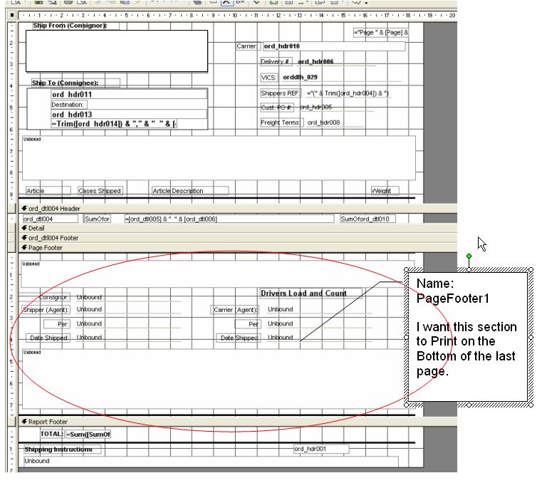 It does hide it, but does not display it on the last page? And I don't want to use the Report footer because I need it right at the bottom of the last page as this is a signature page along with some legal mumbo jumbo...report footer will be messy as it ends anywhere.