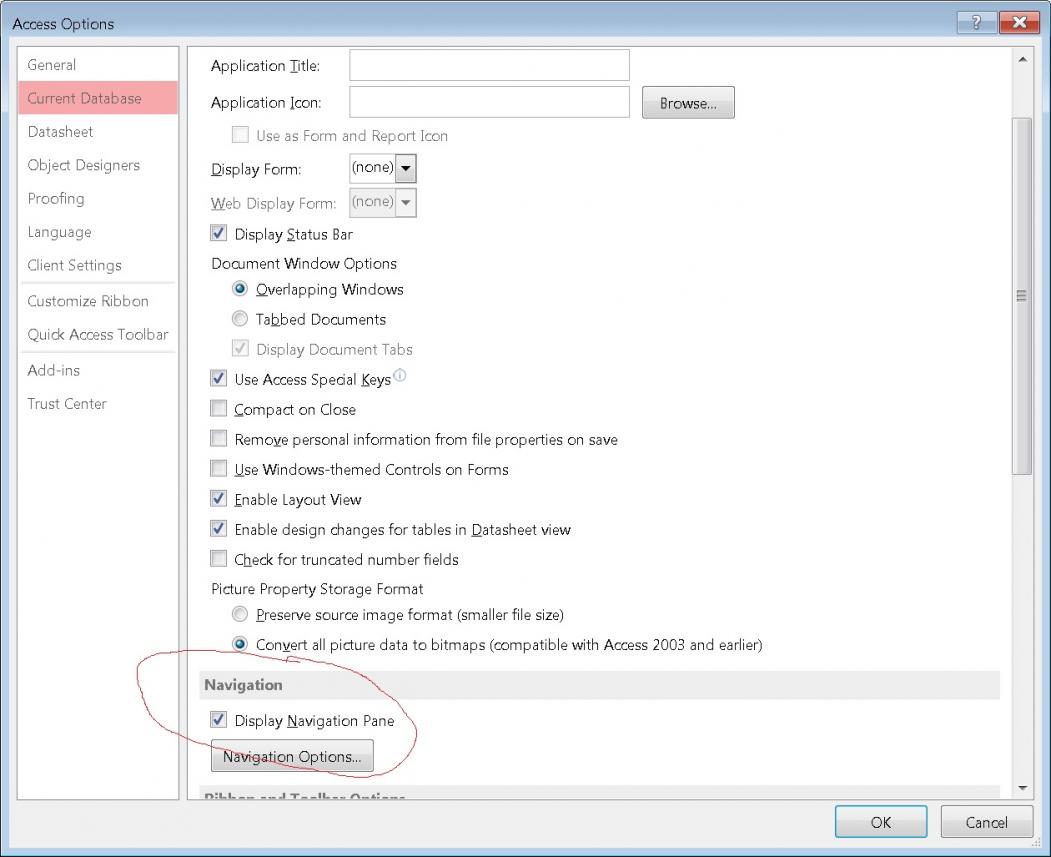 Is there a way for the Navigation Pane to hide when an access file is loaded?