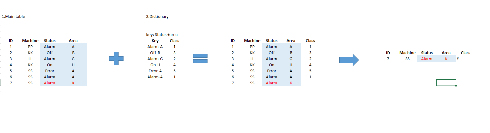 Everytime that I add information to my main table I have a dictionary table that translate each record to a unique Class. However sometimes i have inputs that aren't in the Dictionary table and the user have to classify this new inputs.