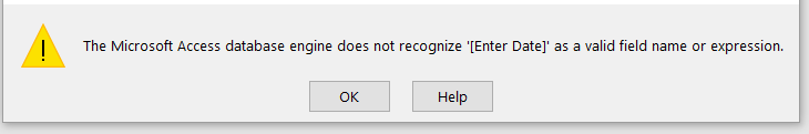 I am strugling to make a filter to my crosstab query, but i always get a "MS Access database engine does not recognize [Enter Remarks]as a valid field name or expression..