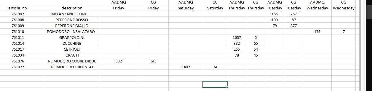 You can't do a cross-tab to get those results. Cross-tab will convert 1 field at most to column headings. I suggest a pivot table in Excel for what you want (https://support.office.com/en-us/ar...eet-data-a9a84538-bfe9-40a9-a8e9-f99134456576).