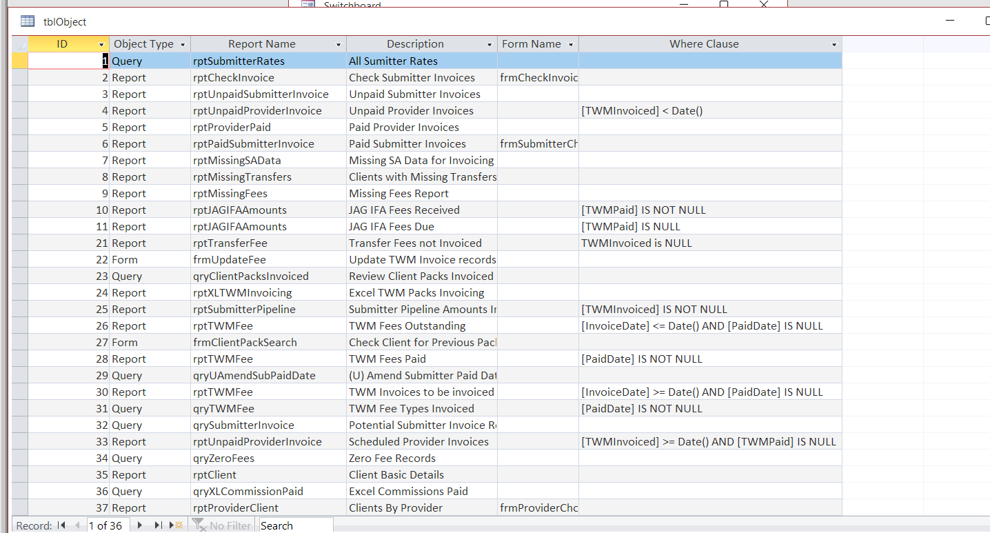 'Pulls list of reports for report combo box and updates when new reports added
