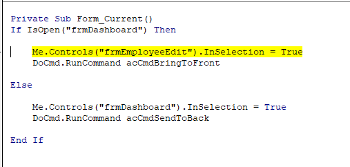 I using MS ACCESS 2016 PRO. I have a dashboard. Its have Menubar to click open form. But some form have to need open another form.