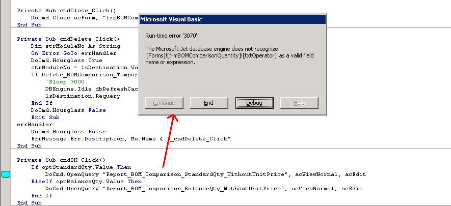 However, i obtain error message as attached during execution. Anyone has idea how to resolve the problem?[Forms]![frmBOMComparisonQuantity]![txtOperator]