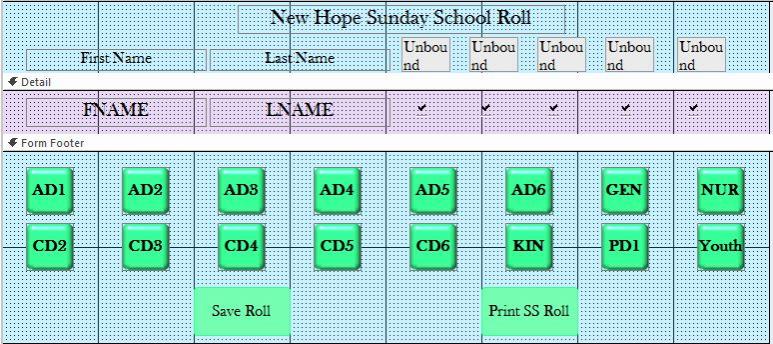 Hello, I've got two tables, Members & SS_Attendance. I am making a form for the SS_Attendance and it pulls the First Name, Last Name, SS_Roll, and SS_Class from the Members table. I tried making a check box to check if that member was there when we take roll. I tried leaving it unbound, but it checks/unchecks all boxes; I tried making it bound to the appropriate field in the SS_Attendance table (via expression), but it doesn't let me click on the box; I tried adding the existing field straight from the SS_Attendance table, but it asks how the two tables are linked. I really feel this is the solution (but could be wrong); how would I go about linking these two tables?