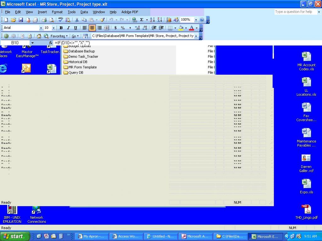 When I attempt to open an excel template from an access form using either run application or a hyperlink the excel template opens to where I can only see the from of the excel and nothing else. (see screen print). Any ideas of what is causing this?