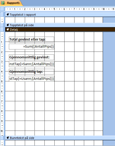 pbaldy Wino Moderator Staff member Local time Today, 15:46 Joined Aug 30, 2003 Messages 36,157 Sep 1, 2010 #2 You don't want them in the detail section, you likely want them in the report footer.