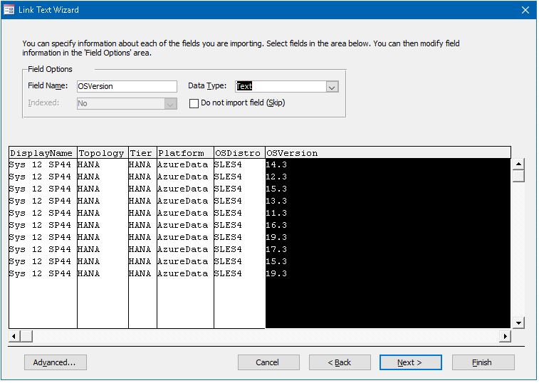 when it will work with this one row - it will work with hundreds because the problem is with fields OSVersion, it should be text and has 12.3 (i suppose?)