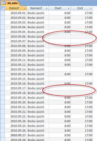 How could I somehow indicate when there are 2 null values one after another? (eg put an X in a new field or something like that)