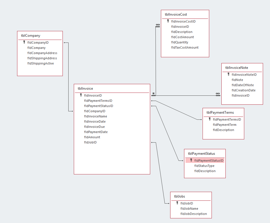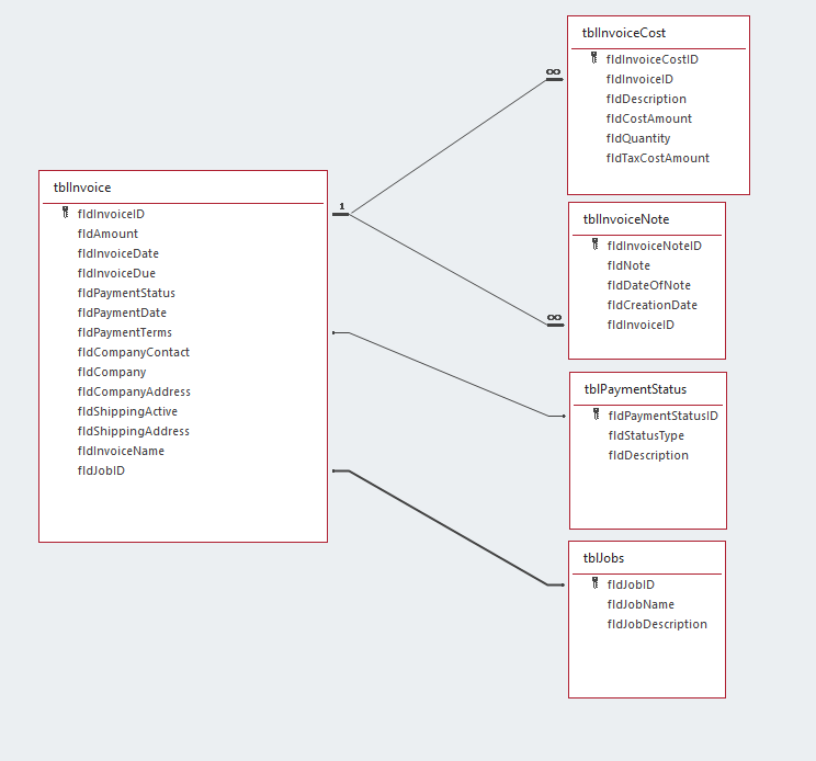 I am working on a few components of my database and have arrived at invoicing. I have created the following tables: