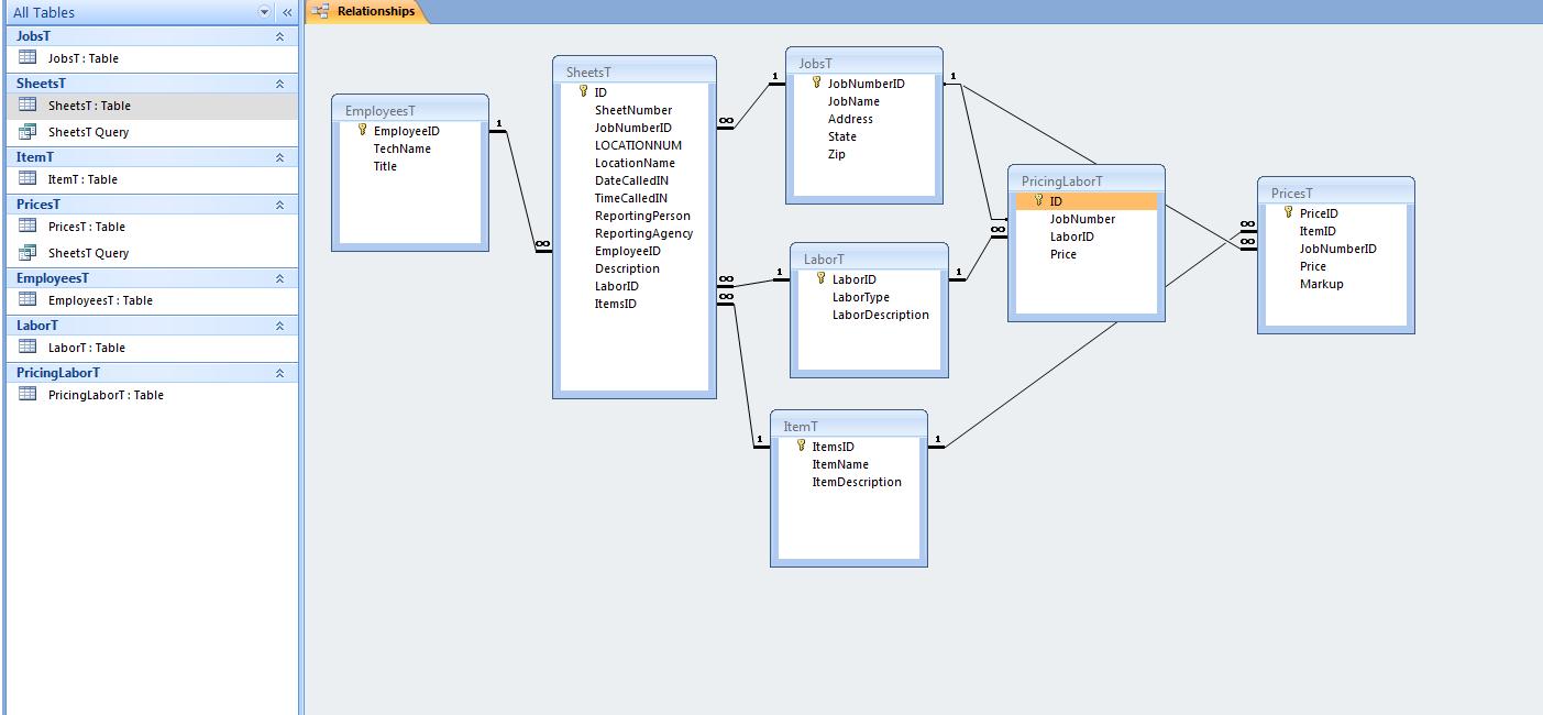 Next you need a table of Customers. Name, Address, Contact, and anything else you want. I would aslo give them a Code. But not Autonumber. People can remember code but not numbers. Besides you need the Autonumber for the Primary Key. So now we have customers under control except for one thing. You need a default Discount/MarkUp rate and the date effective. You can get away with the Date if you don't want a History.