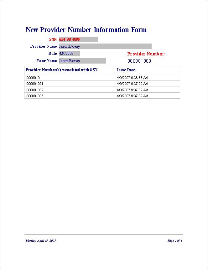 I have a report that prints based on the current record showing on the New Provider form/subform. This is working alright so far and the only trouble I am having is getting the "Newest" provider number (from the subform data) to show in the "Provider Number" unbound text field. I have attached a pic so that you can better understand what I am trying to do.