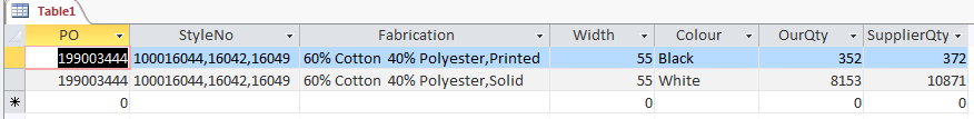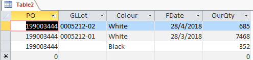 FROM Table1 INNER JOIN Table2 ON Table1.PO = Table2.PO;