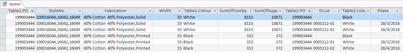 So the easiest solution is use .* for Table1 then enter all the fields individually from Table2 except PO ... OR do the same the other way round