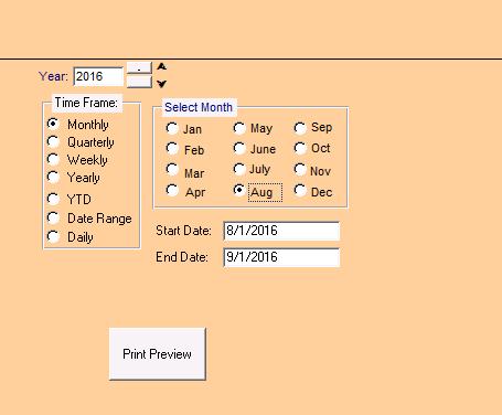 User sets the start /end date via radio buttons: monthly , yearly, YTD, quarter, etc.