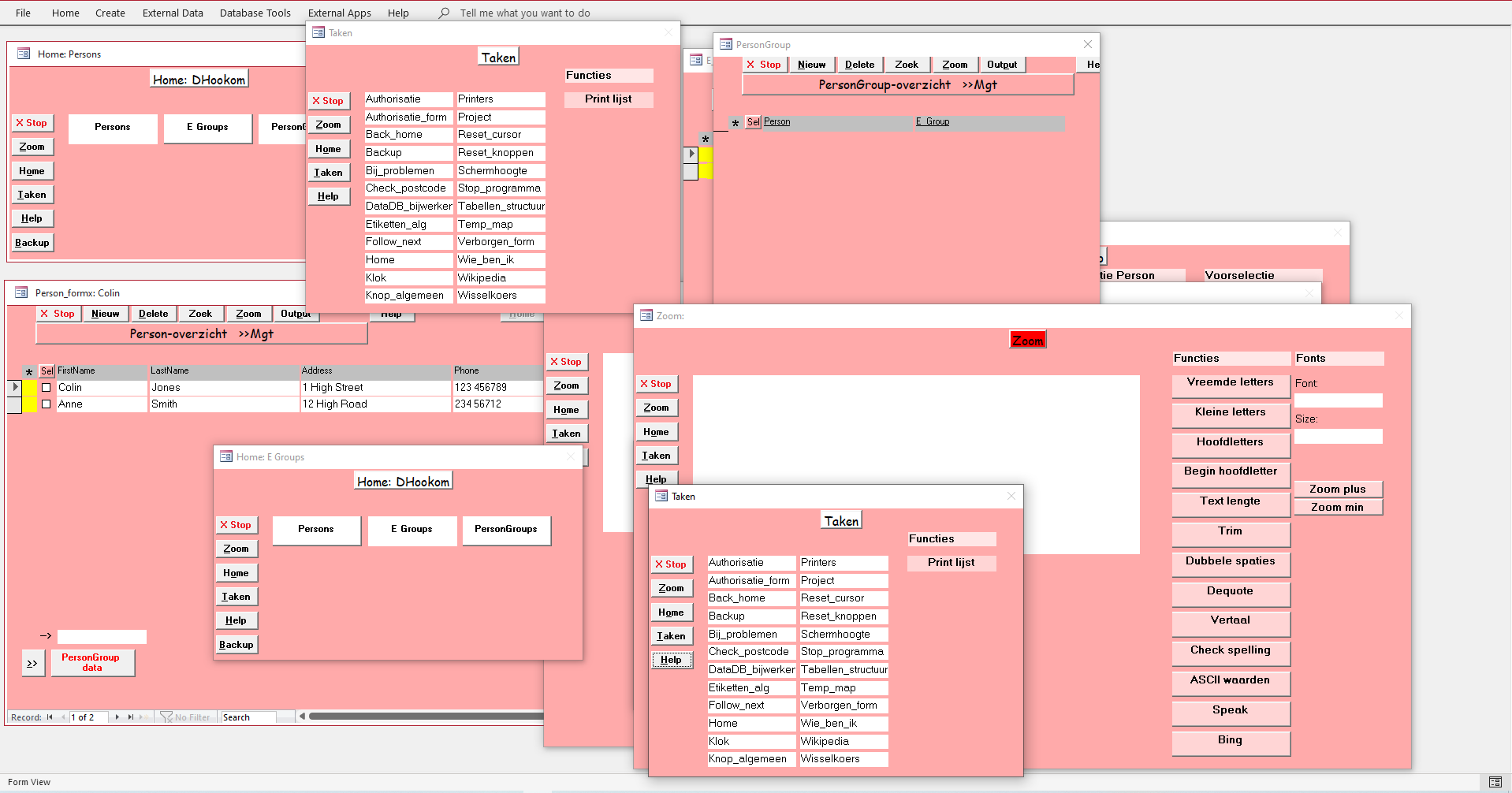 Within a few minutes I had a screen littered with multiple instances of the same form, all looking very similar, with each having to be closed in turn to get back to the original 'Home Persons' form.