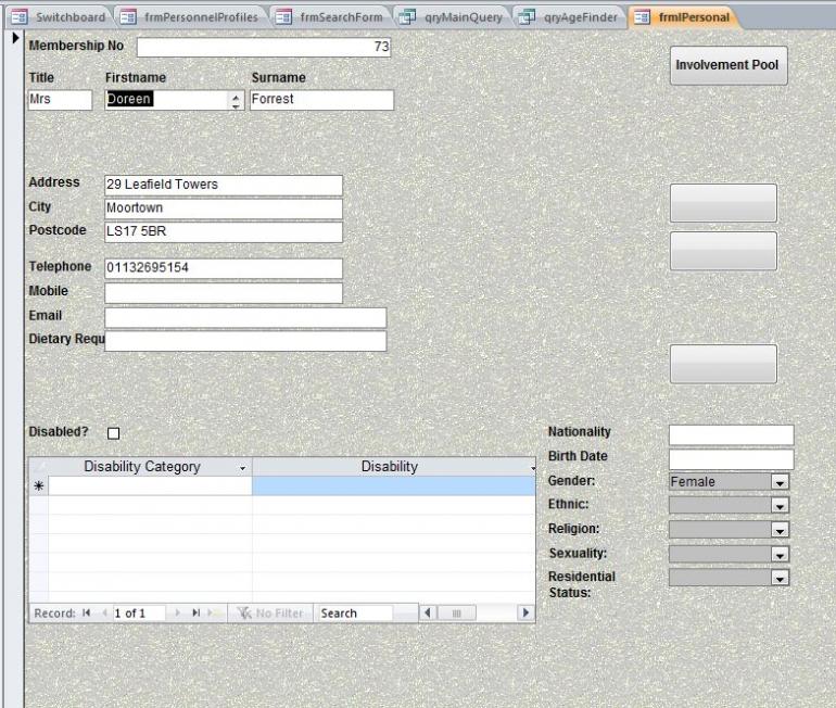 I've attached shots of the entry form, and the existing relationships screen. If any others are needed, let me know and I'll post them.