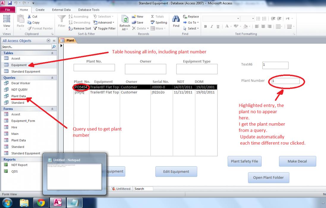 Assuming that you have not set your list box as a multi-select list box, and assuming that the "Plant No" field is the bound column in your list box, you can use code in the After Update event of your list box like: