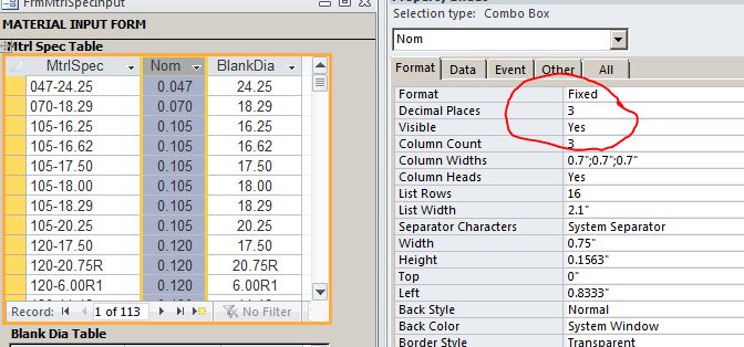 I have a lookup value that accesses a table. The table values are set at 3 decimals. The value that is placed into looked up and placed into the data cell is formatted to 3 decimals. In fact it even displays 3 decimals after the value is selected. The problem that is driving me nuts is wen the lookup drop down box pops up, all the values are shown to 2 decimal places. I'll attach some pics. Any help would be greatly appreciated.