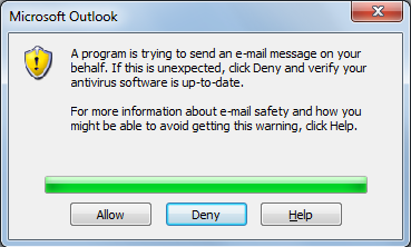 I have a macro which will send an email, but before it before it sends it shows the "A program is trying to send an email message on your behalf" message. (Attached)