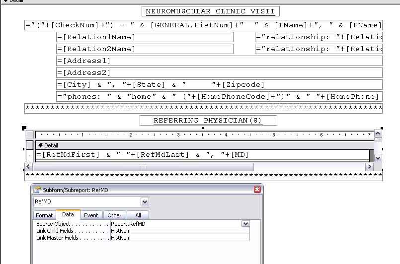 i have a form that opens a report filtered to a single patient and is going to display all of these tables. there is the main information on top, and then a subreport for the reffering doctor (this is all i have so far)