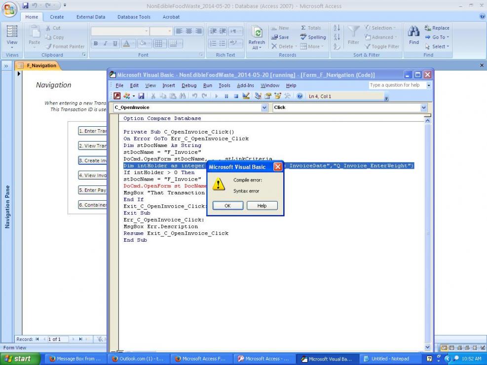 If the invoice was entered previously the date and weight had been filled in so the query then returns no record and the Invoice is blank. It is at this point I would like a message box to pop up.