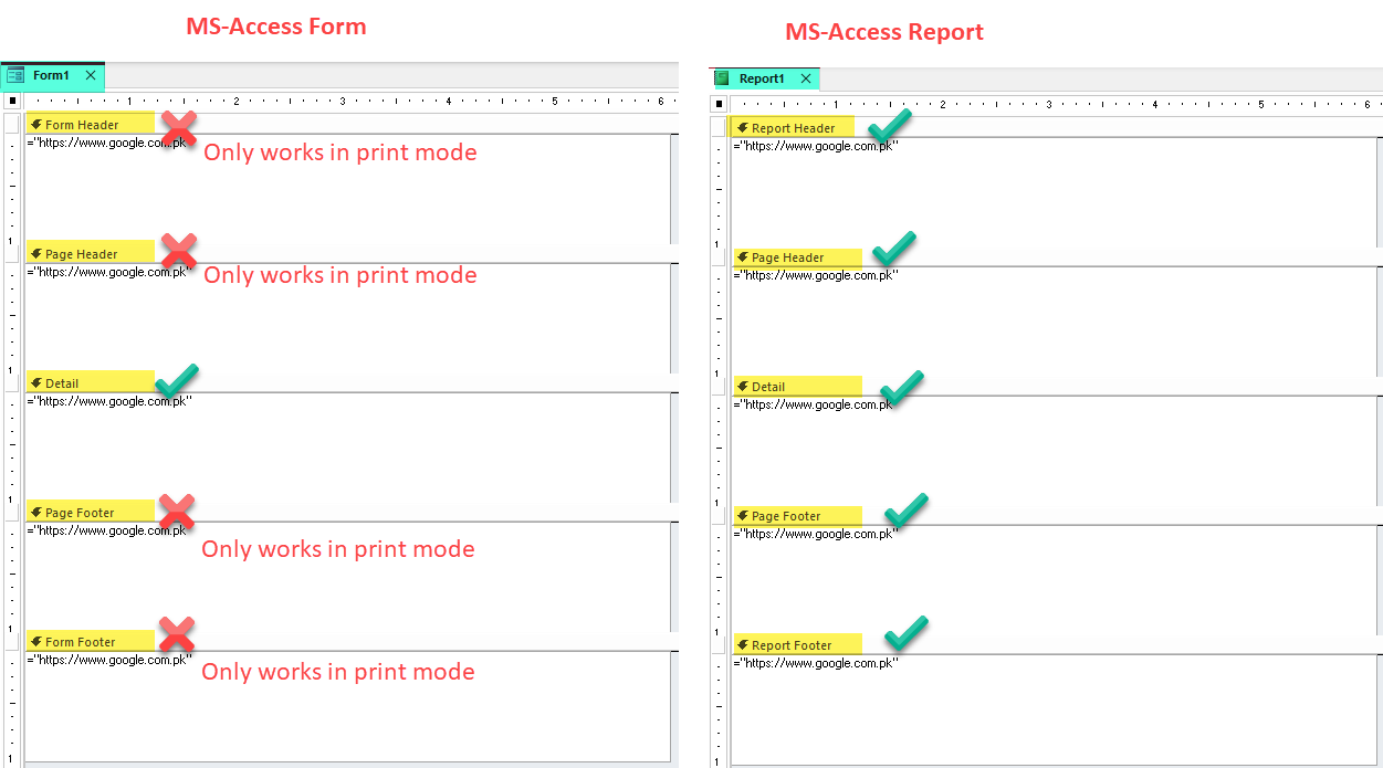 Though the Edge browser control integrates seamlessly in ms-access continuous form and report, it also works great with the ReportHeader, PageHeader, Detail, PageFooter, and ReportFooter within Report. However, the EdgeBrowser Control does not work when you try to use in the FormHeader and FormFooter of an MS-Access form (you can refer to the attached screenshot for reeference). Is there something I might be missing or overlooking? I would appreciate any insights.