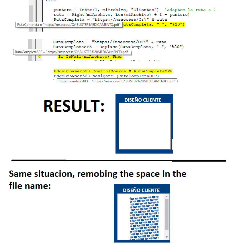 Hi Joe, thank you for your prompt response and checking. I am using a fairly straightforward script, as below. This script is working well for users on the current channel. but return timeout error for Insider build Microsoft® Access® for Microsoft 365 MSO (Version 2306 Build 16.0.16505.20000) 64-bit, no matter what I try, the return result is the timeout message: RetrieveJavascriptValue timed out. Please verify the JavaScript expression supplied is valid.What javascript are you using in retrievejavascriptvalue? And thats strange that the control works in headers/footers for reports but not forms, as under the hood they're essentially the same thing. I can look into that